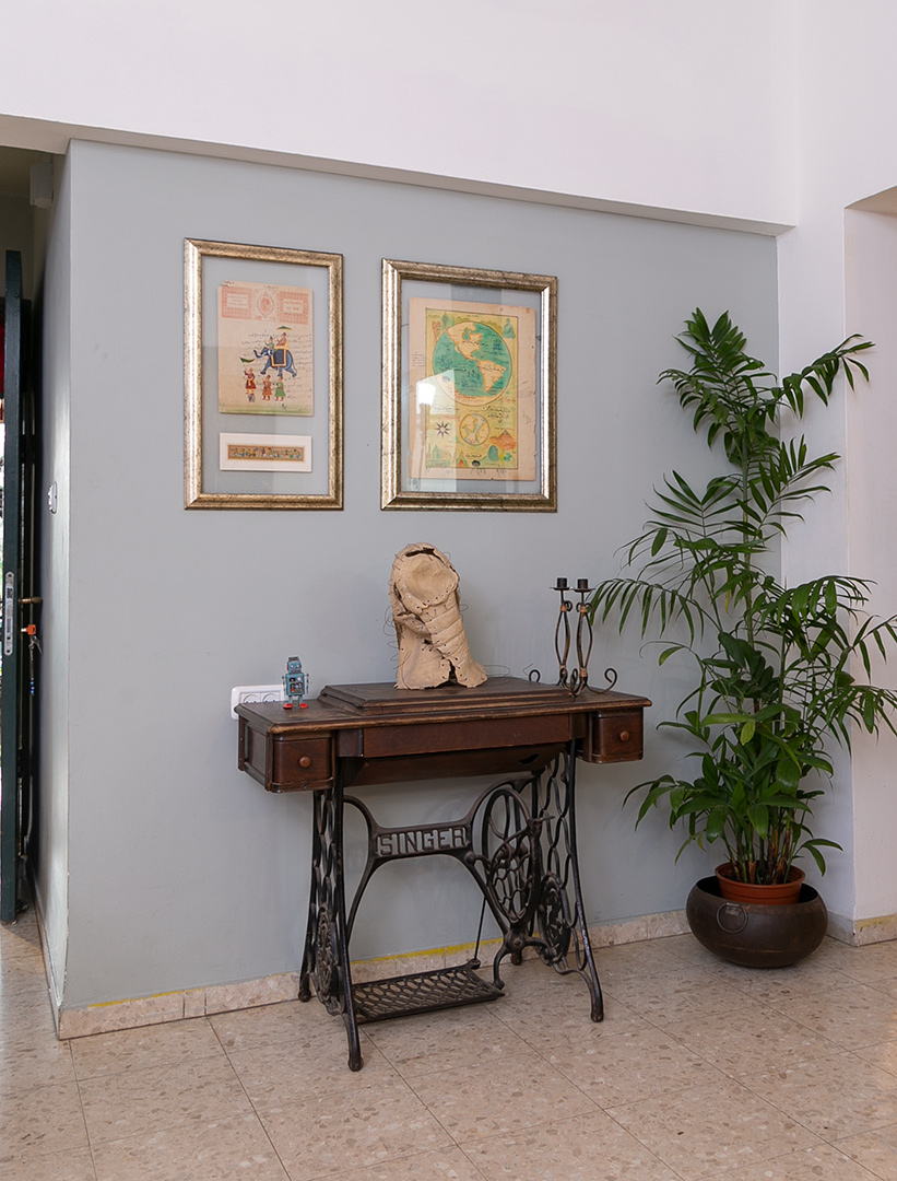 מה שהתחיל כשיפוץ קטן הפך למסע עיצובי שלם, תוך שמירה על אופיו הייחודי של הבית, מלא בפריטי וינטג’, ציורים וצילומים מכל העולם.