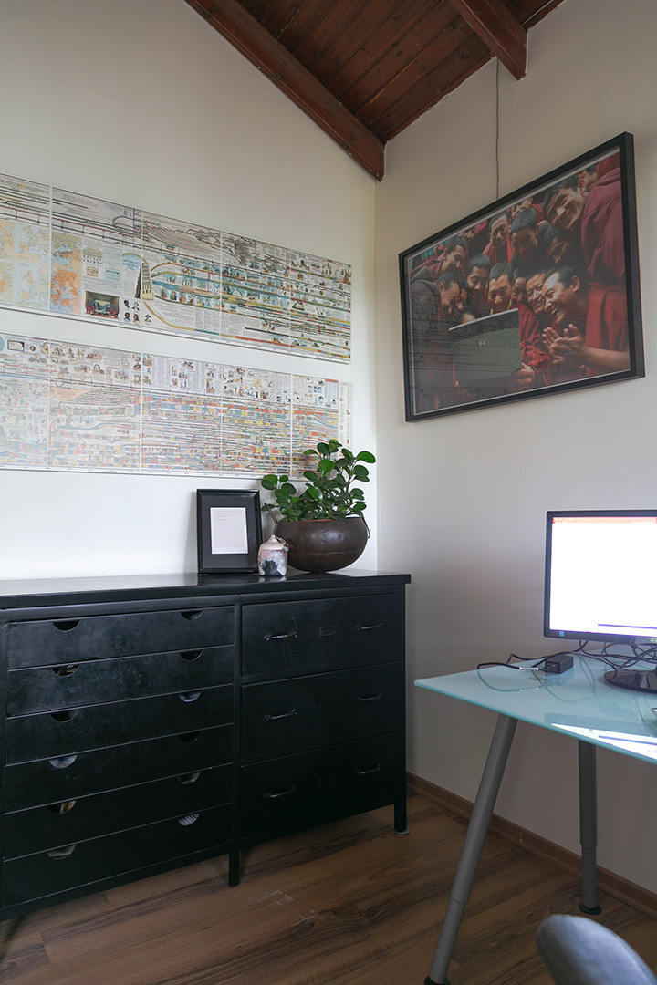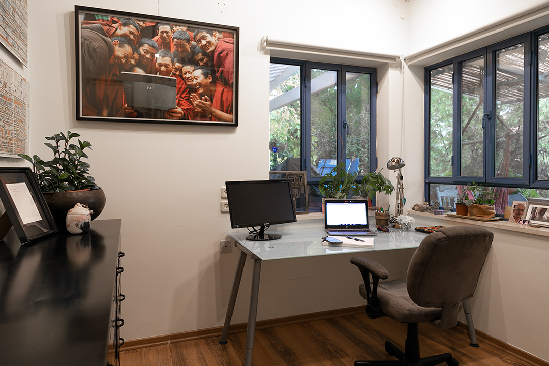 חדר שירות קטן הוסב למשרד פונקציונלי הצמוד למטבח, מה שהפך את החלל לפרקטי ונגיש יותר. התוצאה: בית מלא צבע, עבר והווה שלובים יחד בתחושת רעננות והתחדשות.